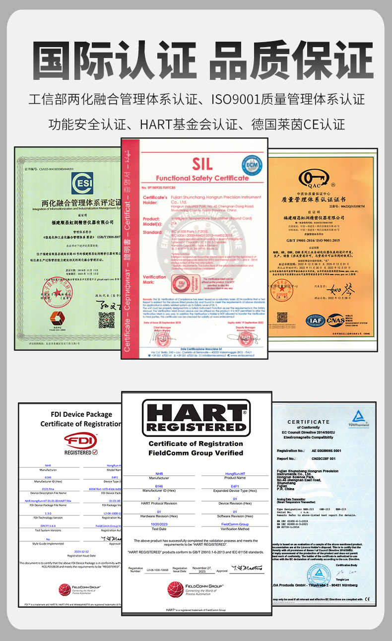 虹潤公司是專業(yè)生產(chǎn)溫度變送器的國家專精特新“小巨人”企業(yè)。生產(chǎn)的智能溫度變送器,具有適配各類溫度傳感器,精度高,穩(wěn)定性好,通過編程線修改輸入信號類型及量程,高抗干擾等特點(diǎn)。該產(chǎn)品不僅通過HART基金會(huì)認(rèn)證、德國萊茵 CE 認(rèn)證與 SIL 功能安全認(rèn)證,還獲得具備減震抗干擾能力的溫度變送器、信號隔離器、一種二端子模塊、無源信號隔離器等4項(xiàng)國家發(fā)明專利,主持起草物聯(lián)網(wǎng)智能溫度儀表、現(xiàn)場設(shè)備工具(FDT)接口規(guī)范、工業(yè)過程測量和控制系統(tǒng)用溫度變送器等3項(xiàng)國家標(biāo)準(zhǔn),以及通信系統(tǒng)多通道數(shù)據(jù)采集控制終端規(guī)范軍用標(biāo)準(zhǔn),參與國際5G標(biāo)準(zhǔn)制定,取得智能溫度變送器、HART溫度變送器等3項(xiàng)相關(guān)軟件著作權(quán)。產(chǎn)品廣泛應(yīng)用于石油、化工、電力、冶金、制藥、食品、水處理等各種工業(yè)領(lǐng)域。