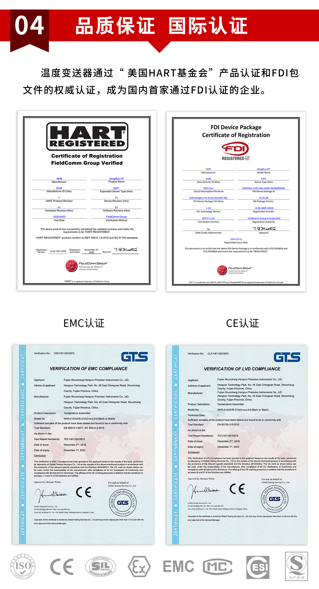 虹潤公司是專業(yè)生產(chǎn)溫度變送器的國家專精特新“小巨人”企業(yè)。生產(chǎn)的LCD 隔離智能溫度變送器,具有熱電阻熱偶信號(hào)全切換輸入,精度高,穩(wěn)定性好,輸入輸出隔離,帶HART或RS485通訊等特點(diǎn)。該產(chǎn)品不僅通過HART基金會(huì)認(rèn)證、德國萊茵 CE 認(rèn)證與 SIL 功能安全認(rèn)證,還獲得具備減震抗干擾能力的溫度變送器、信號(hào)隔離器、一種二端子模塊、無源信號(hào)隔離器等4項(xiàng)國家發(fā)明專利,主持起草物聯(lián)網(wǎng)智能溫度儀表、現(xiàn)場設(shè)備工具(FDT)接口規(guī)范、工業(yè)過程測量和控制系統(tǒng)用溫度變送器等3項(xiàng)國家標(biāo)準(zhǔn),以及通信系統(tǒng)多通道數(shù)據(jù)采集控制終端規(guī)范軍用標(biāo)準(zhǔn),參與國際5G標(biāo)準(zhǔn)制定,取得高精度溫度變送器等5項(xiàng)相關(guān)軟件著作權(quán)。產(chǎn)品廣泛應(yīng)用于石油、化工、電力、冶金、制藥、食品、水處理等各種工業(yè)領(lǐng)域。