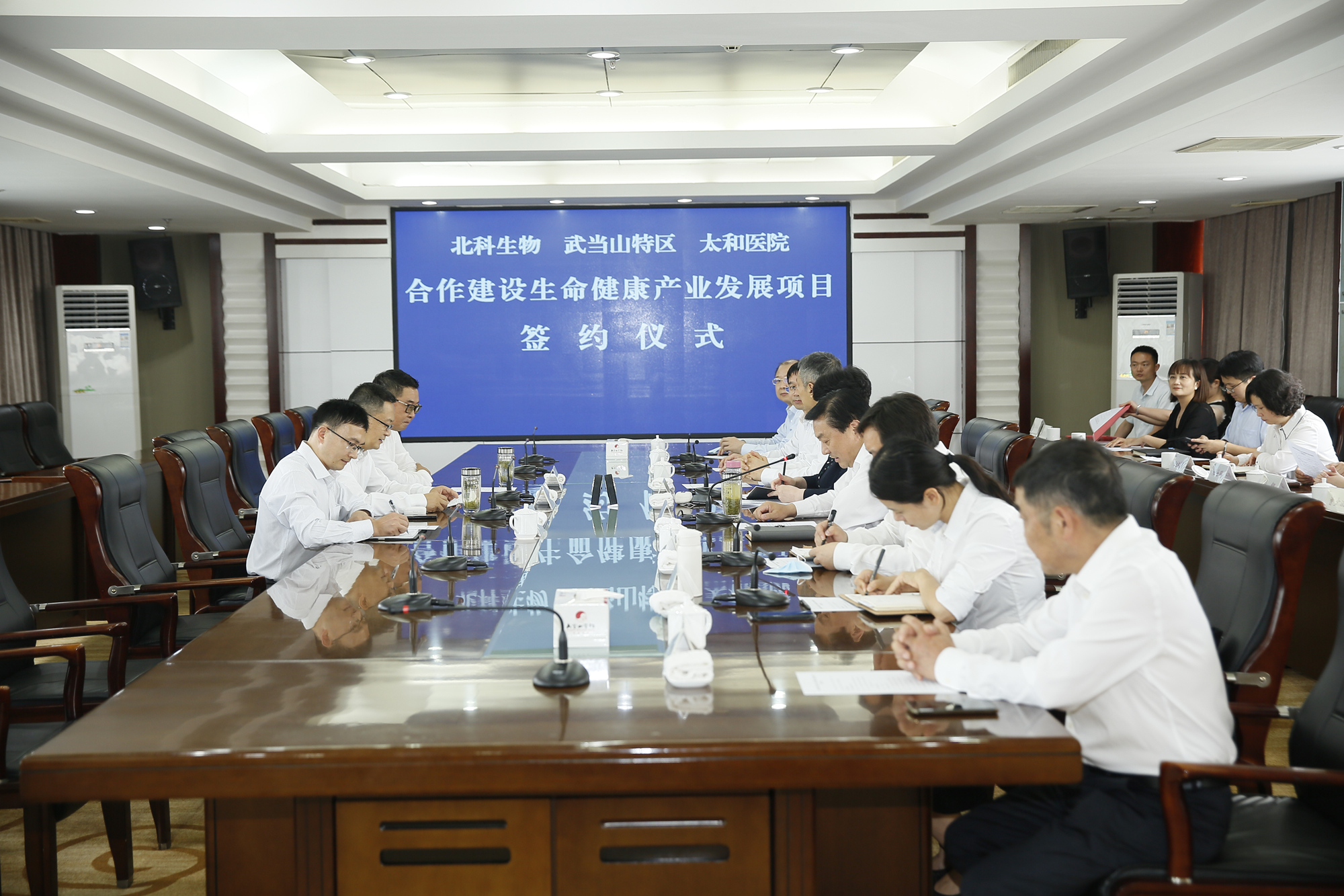 簽約儀式現(xiàn)場(chǎng),深圳市北科生物科技有限公司、特區(qū)管委會(huì)、太和醫(yī)院代表三方共同簽訂了協(xié)議。北科生物科技有限公司與太和健康投資管理有限責(zé)任公司簽訂了協(xié)議。