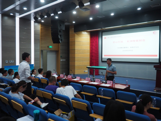 決賽之前,林善平先生給學生們作了題為“匠心打造,虹潤智能制造”的講座,林先生圍繞虹潤集團傳承的“工匠精神”和“傳統(tǒng)文化”,向?qū)W生們講述了虹潤如何通過不斷尋求發(fā)展道路、不斷發(fā)現(xiàn)問題解決問題,從“中國最好”走向“世界最好”的過程。講座后同學們就科技創(chuàng)新、大學生創(chuàng)業(yè)等感興趣的方面向林先生提問,林先生一一做了耐心解答,現(xiàn)場氣氛活躍。