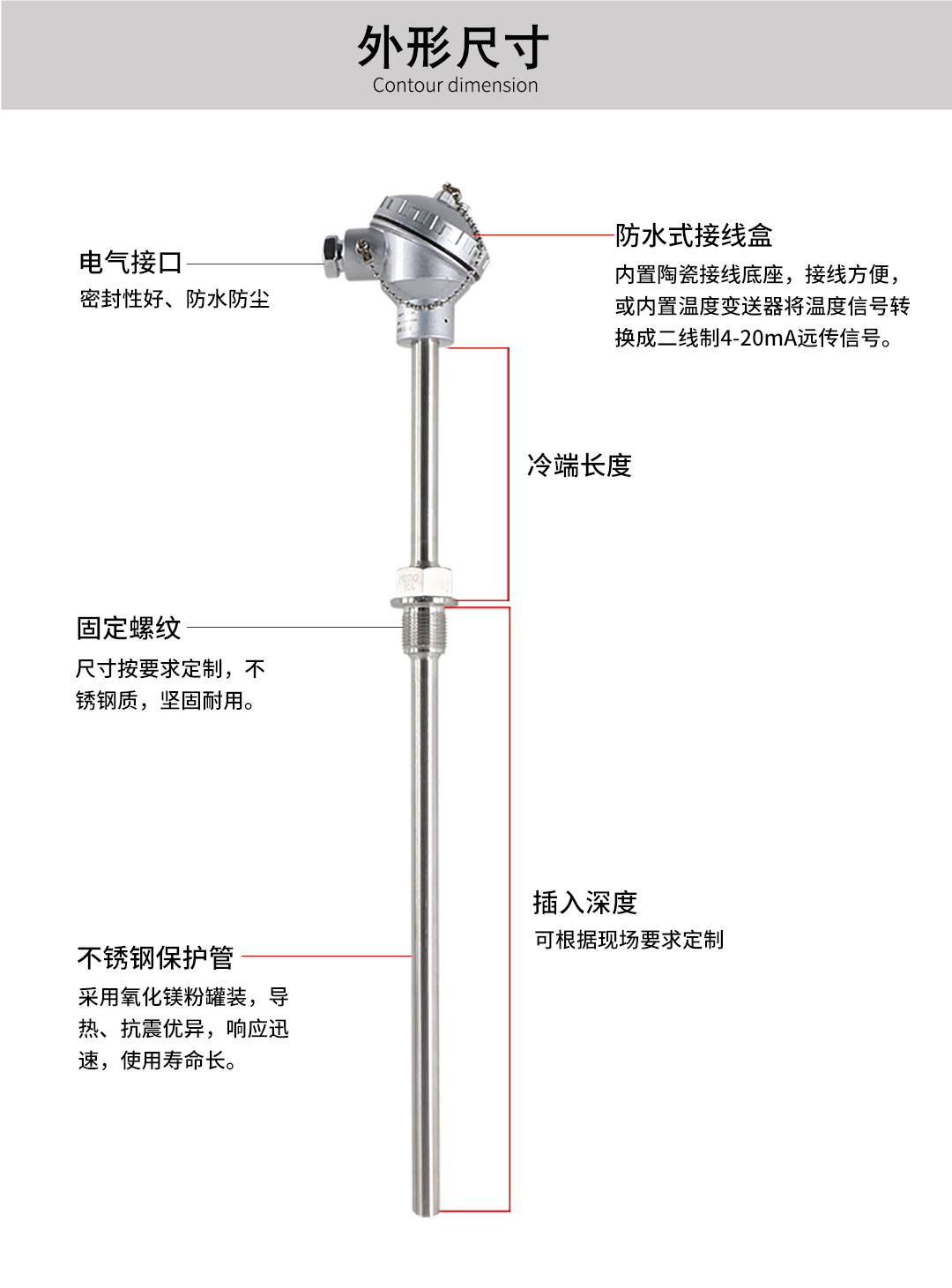 裝配式熱電阻熱電偶作為溫度測量傳感器,通常與溫度變送器、調(diào)節(jié)器及顯示儀表等配套使用,組成過程控制系統(tǒng),用以直接測量或控制各種生產(chǎn)過程中流體、蒸汽和氣體介質(zhì)以及固體表面等溫度。