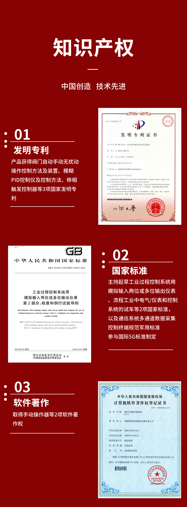 虹潤公司是專業(yè)生產(chǎn)智能手操器的國家專精特新“小巨人”企業(yè),生產(chǎn)的手動操作器,具有手自動無擾切換,直接調(diào)節(jié)閥門,多種輸出類型,外接強制手動功能,高抗干擾等特點。產(chǎn)品獲得閥門自動手動無擾動操作控制方法及裝置、模糊PID控制儀及控制方法、移相觸發(fā)控制器等3項國家標準,主持起草工業(yè)過程控制系統(tǒng)用模擬輸入兩位或多位輸出儀表、流程工業(yè)中電氣/儀表和控制系統(tǒng)的試車等2項國家標準,以及通信系統(tǒng)多通道數(shù)據(jù)采集控制終端規(guī)范軍用標準,參與國際5G標準制定,取得手動操作器等3項相關軟件著作權(quán)。產(chǎn)品廣泛應用于電力、石化、冶金、化工、造紙、食品、輕工、制藥、熱處理、水處理、機械配套等各種工業(yè)現(xiàn)場。