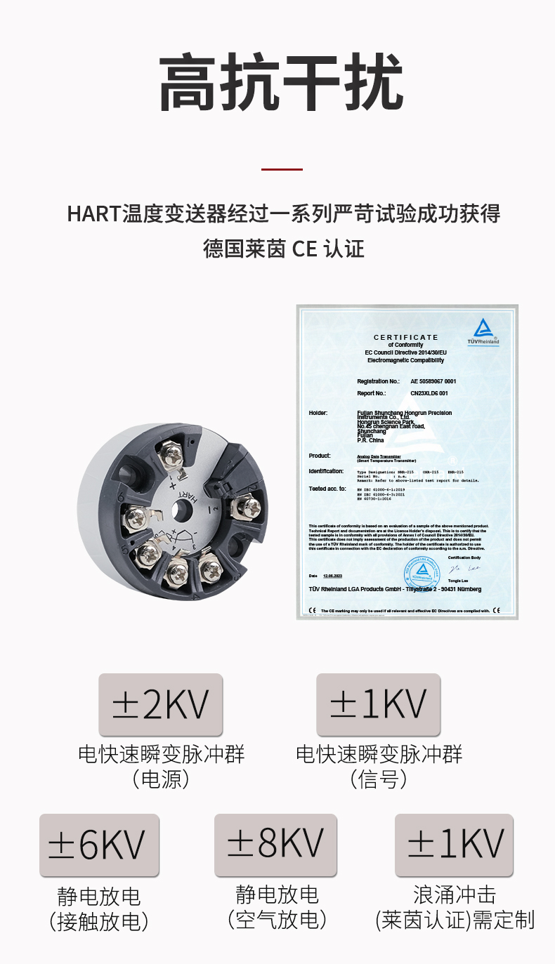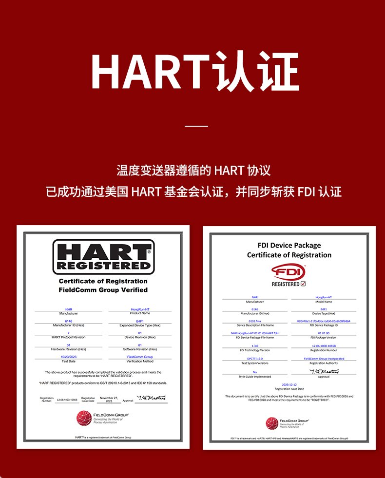 虹潤(rùn)公司是專業(yè)生產(chǎn)溫度變送器的國(guó)家專精特新“小巨人”企業(yè)。生產(chǎn)的智能溫度變送器,具有適配各類溫度傳感器,精度高,通過編程線修改輸入信號(hào)類型及量程,高抗干擾,HART或485通訊等特點(diǎn)。該產(chǎn)品不僅通過HART基金會(huì)認(rèn)證、德國(guó)萊茵 CE 認(rèn)證與 SIL 功能安全認(rèn)證,還獲得具備減震抗干擾能力的溫度變送器、信號(hào)隔離器、一種二端子模塊、無源信號(hào)隔離器等4項(xiàng)國(guó)家發(fā)明專利,主持起草物聯(lián)網(wǎng)智能溫度儀表、現(xiàn)場(chǎng)設(shè)備工具(FDT)接口規(guī)范、工業(yè)過程測(cè)量和控制系統(tǒng)用溫度變送器等3項(xiàng)國(guó)家標(biāo)準(zhǔn),以及通信系統(tǒng)多通道數(shù)據(jù)采集控制終端規(guī)范軍用標(biāo)準(zhǔn),參與國(guó)際5G標(biāo)準(zhǔn)制定,取得HART溫度變送器、智能溫度變送器等3項(xiàng)相關(guān)軟件著作權(quán)。產(chǎn)品廣泛應(yīng)用于石油、化工、電力、冶金、制藥、食品、水處理等各種工業(yè)領(lǐng)域。